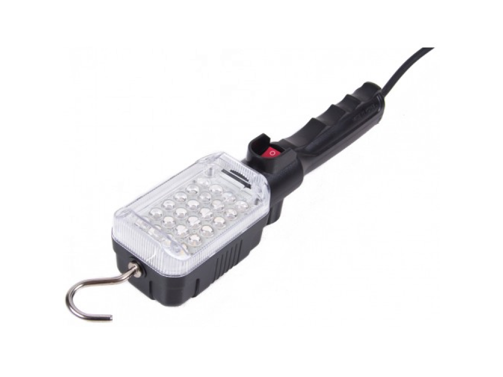 Лампа переносная проводная, 24 светодиода При высокой мощности освещения (1900 lumen) данный светильник может похвастаться низким потреблением энергии. Кроме тогo, конструкция оснащена сильным магнитом и металлическим поворотным крюком для того, чтобы светильник было проще закрепить именно в том положении, которое требуется. Техническое совершенство и уникальный набор возможностей делают данное устройство единственным предложением такого рода на рынке. В своей ценовой категории устройств, сравнимых с данным светильников по функционалу, нет. Внимание! Очищайте прозрачную крышку от загрязнений для более интенсивного освещения. Не разбирайте, не вносите изменений в конструкцию и не ремонтируйте светильник самостоятельно. Не используйте светильник вблизи легковоспламеняющихся газов или жидкостей. Прочный корпус Ударопрочный корпус из АБС-пластика с покрытием из стандартного поликарбоната Яркий свет 24 Сверхмощных светодиода LG Innotek SMD Магнитный держатель Мощный неодимовый магнит для фиксации на металлических поверхностях